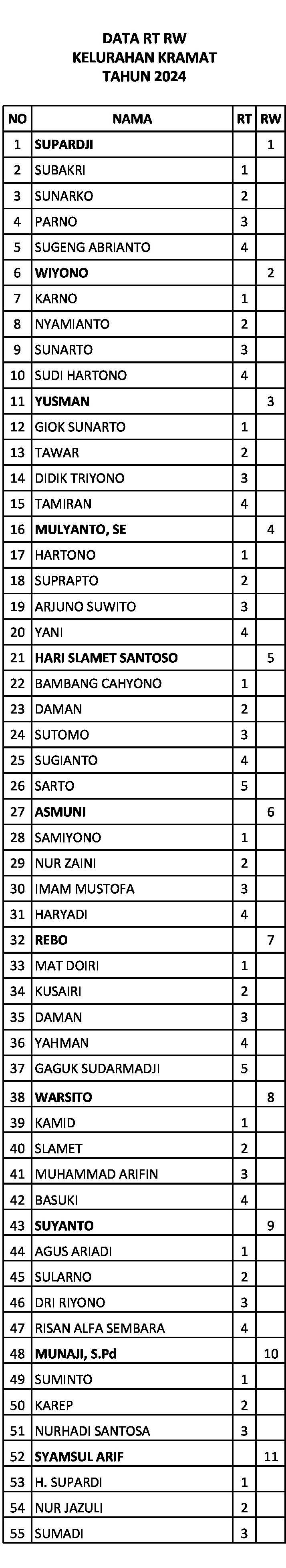 Kepengurusan RT dan RW Kelurahan Kramat.